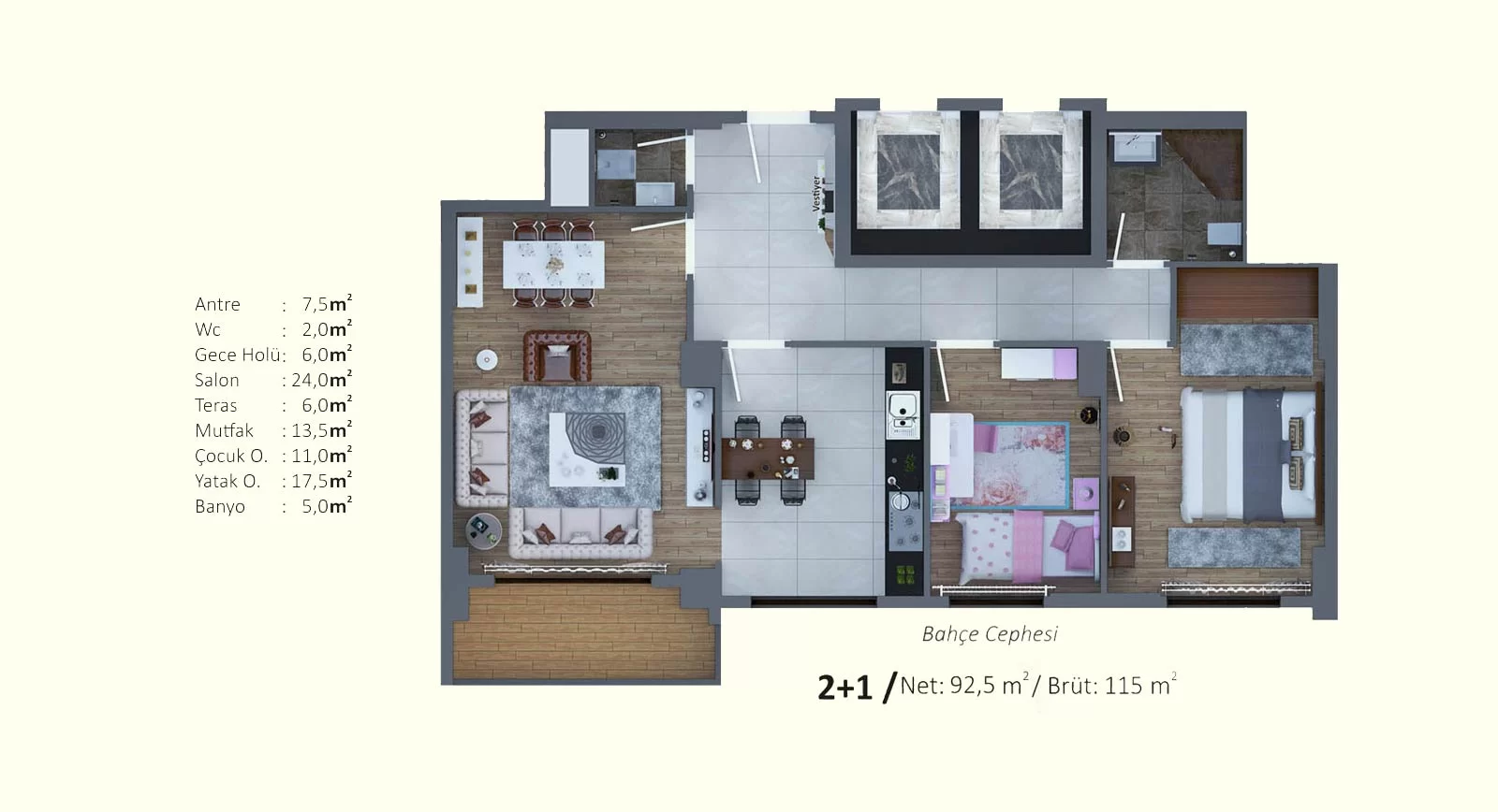 Şehir merkezine, hava alanına, Otokar’a, Forum ve Ceylan AVM alışveriş merkezlerine yakındır. Proje konum itibariyle eğitim kurumları, sağlık tesisleri, ibadethaneler, kamu hizmet merkezleri ve sosyal tesislere yürüme mesafesindedir.